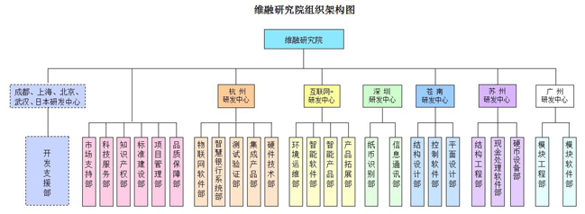 維融研究院由我國注冊防偽技術專家、維融董事長魏偉擔任院長,由浙江大學博士陳祥獻擔任常務副院長,并擁有國家防偽專家、博士、碩士以及教授級高工,高級工程師、行業專業人才和研發技術人員等高級研發人才,下設溫州總部研發中心、杭州研發中心、深圳研發中心、廣州研發中心、蘇州研發中心、互聯網+研發中心等研發機構。設立市場支持部、科技服務部、知識產權部、標準建設部、項目管理部、品質保障部等部門,各研發中心均設立了相關研發和管理部門;具有國內一流的科研設備和配套設施,具備了較為雄厚的科研生產和技術開發實力。
